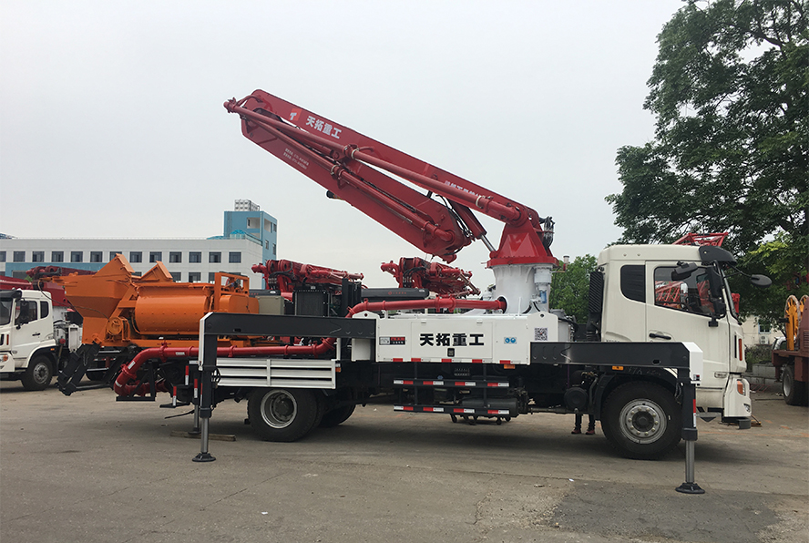 湖南天拓重工45米攪拌泵車一體機(jī)適合鄉(xiāng)鎮(zhèn)和縣城10-12層樓的混凝土泵送需求,每小時(shí)50-90個(gè)立方的泵送排量,可滿足多工地的混凝土輸送;此款攪拌泵車采用六節(jié)臂架設(shè)計(jì),更靈活,布料范圍更廣泛。