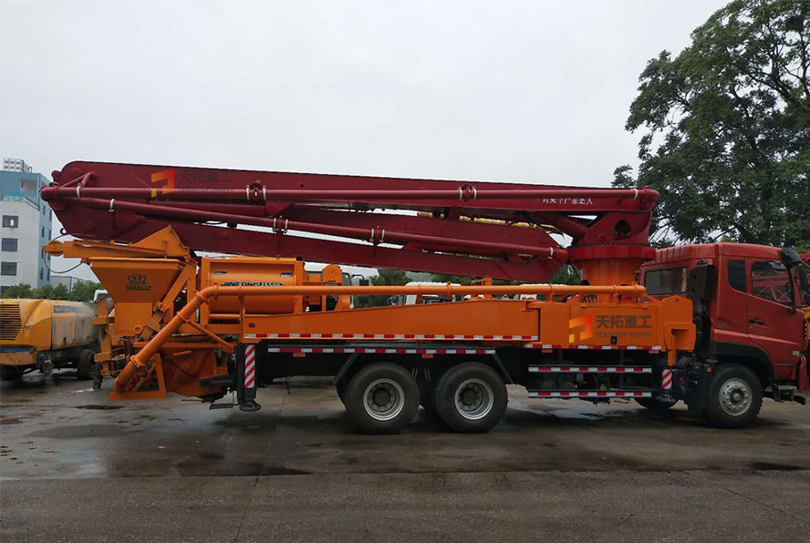 湖南天拓重工38米攪拌天泵車是由38米混凝土泵車與500強制攪拌機一體,適用鄉(xiāng)鎮(zhèn)和縣城3-10層樓房混凝土的泵送需求,每小時理論輸送量達(dá)50-80立方,它自帶攪拌泵車一體,可現(xiàn)場攪拌,也可打商混凝。采用特種專用汽車底盤,方便農(nóng)村和山區(qū)道路行駛。選用國際知名品牌的液壓,電氣元件,性能更可靠。